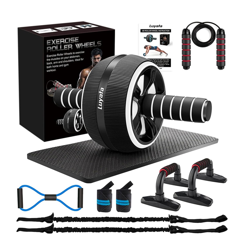 Das Luyata 10-in-1 Bauchmuskeltrainer-Set ist die ultimative Komplettlösung für Home-Gym-Enthusiasten, die maximale Vielseitigkeit suchen. Dieses umfassende Kit enthält: 1 Ab-Roller, 1 dicke Schaumstoff-Kniematte, 2 Push-Up-Bars, 2 Handgelenkbandagen, 1 Widerstandsband, 1 Springseil, 1 Trainingsanleitung – alles in eleganter Geschenkverpackung.