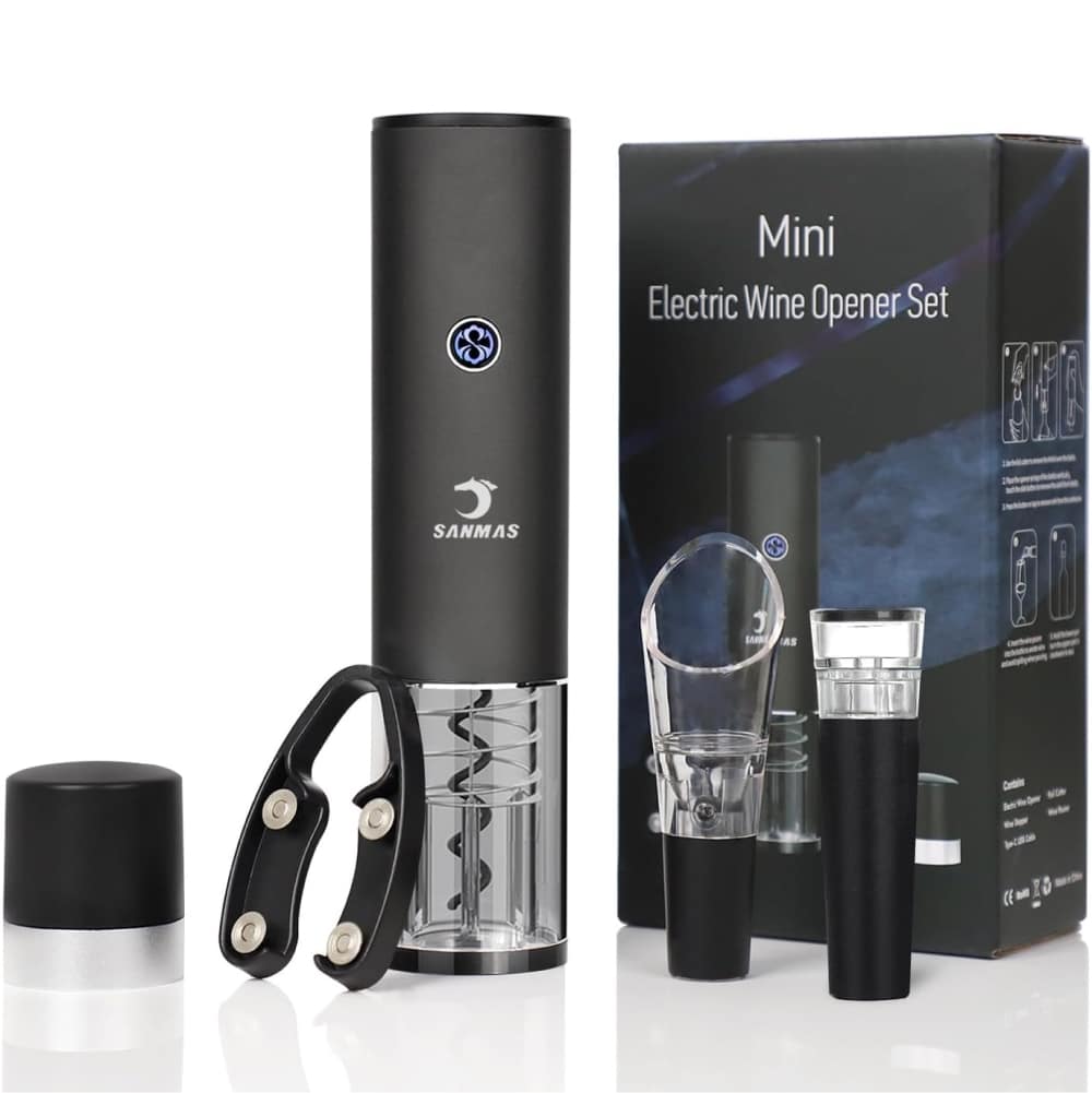 Der SANMAS Elektrischer Korkenzieher positioniert sich als budgetfreundliche Komplettlösung für preisbewusste Weinliebhaber, die dennoch nicht auf Funktionalität verzichten möchten. Dieses multifunktionale Gerät bietet ein umfassendes Werkzeug-Set, das neben dem elektrischen Öffner einen Folienschneider, einen Weinausgießer und zwei Weinstopfen umfasst – alles zu einem attraktiven Preis.