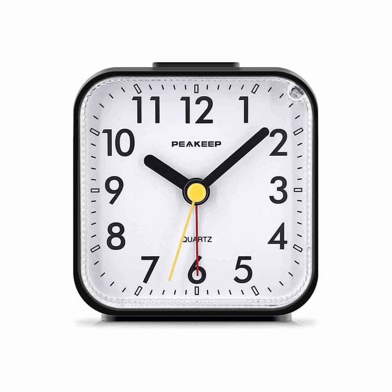 Der Peakeep Tageslichtwecker ist ein klassischer analoger Wecker im kompakten Format von 8,3 x 8,3 x 4,1 cm und einem Gewicht von nur 99 Gramm. Sein minimalistisches Design macht ihn perfekt für kleine Nachttische, Schreibtische und Regale, während die batteriebetriebene Funktion ihn ideal für Reisen macht.